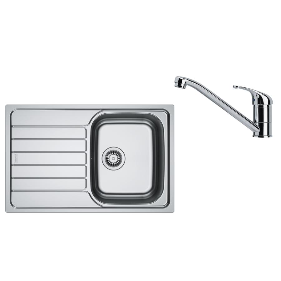 DrezSKN 611-78je moderný drez vhodný pre hornú montáž. Hladký povrch je antibakteriálny, ľahko sa čistí a je 100% recyklovateľný. Životnosť nerezu neprekonal zatiaľ žiadny iný materiál. Vysoko kvalitná chromíková oceľ je odolná proti korózii aj po porušení povrchu drezu, odolá vysokým teplotám až do 550°C, je pružná a preto nepraskne. Kuchynská batériaFB 250 NEW BASICje chrómová páková zmiešavacia batéria bez sprchy, tlaková.Otočná 360°. Pripojenie Hadičky 45 cm. Prietok vody 10,8 l/min. (3 bar).